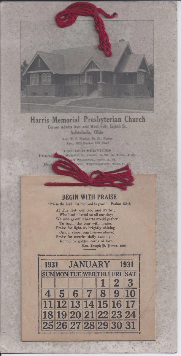 1931 CALENDAR ASHTABULA OH HARRIS MEMORIAL PRESBYTERIAN CHURCH | eBay